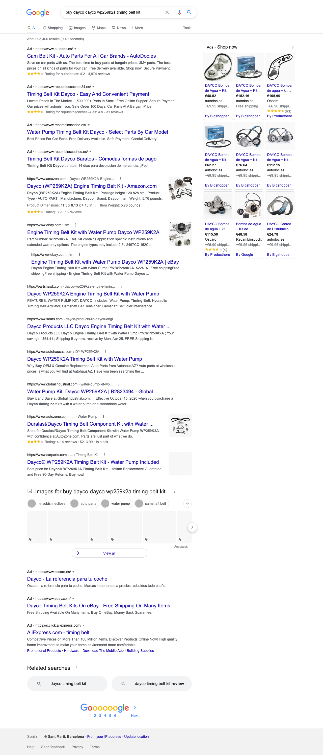p047-b1-t9 — buy dayco dayco wp259k2a timing belt kit