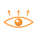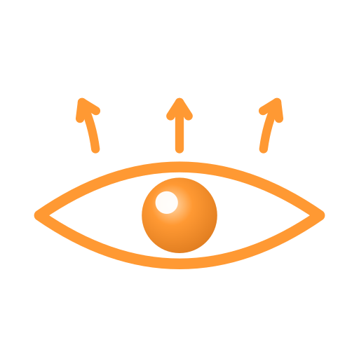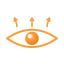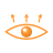 The orange eye with three arrows above — has been Scrutinizer's identity since the original 2008 implementation, lives in the Electron app as the URL-bar toggle that turns the perceptual simulation on/off. The arrows are extramission: the eye actively projecting attention outward, not passively receiving light. Three of them echo the engine's three concentric attention zones (fovea / parafovea / periphery).
